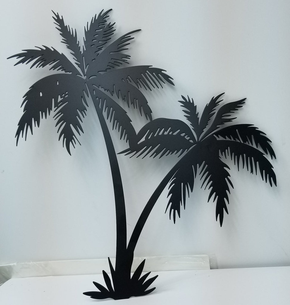 Bookishbunny Handmade Palm Tree 16 Wrought Iron Wall Art Home Decor Tropical Beach Decoration Plaque Metal Art, 2mm thick (16 inches Two Palms)