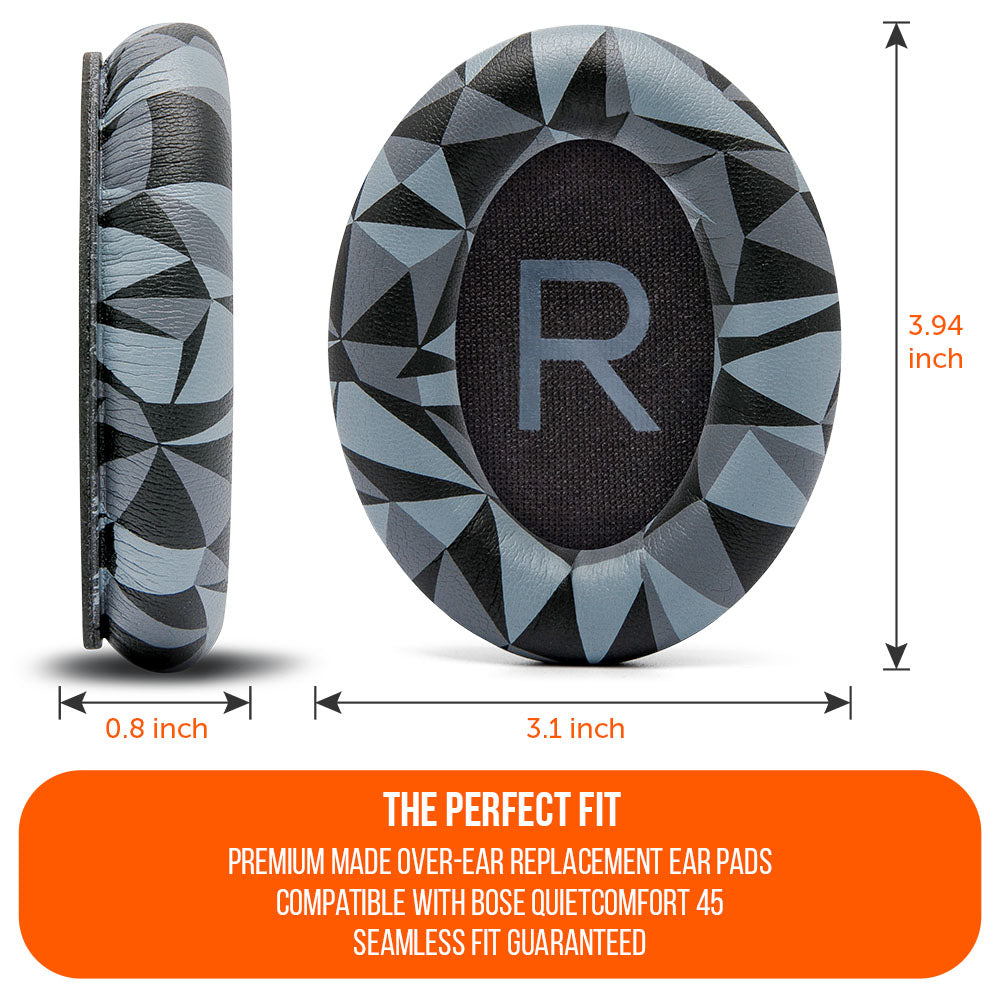 - Extra Durable and Firm: The inside seams on this replacement ear cushion kit for Bose QC45 are made with stitching that is reinforced with glue, which prevents your cushions from splitting. We also increased the firmness of the PU leather in these earpads, combined, these additions should increase your earpads lifespan.