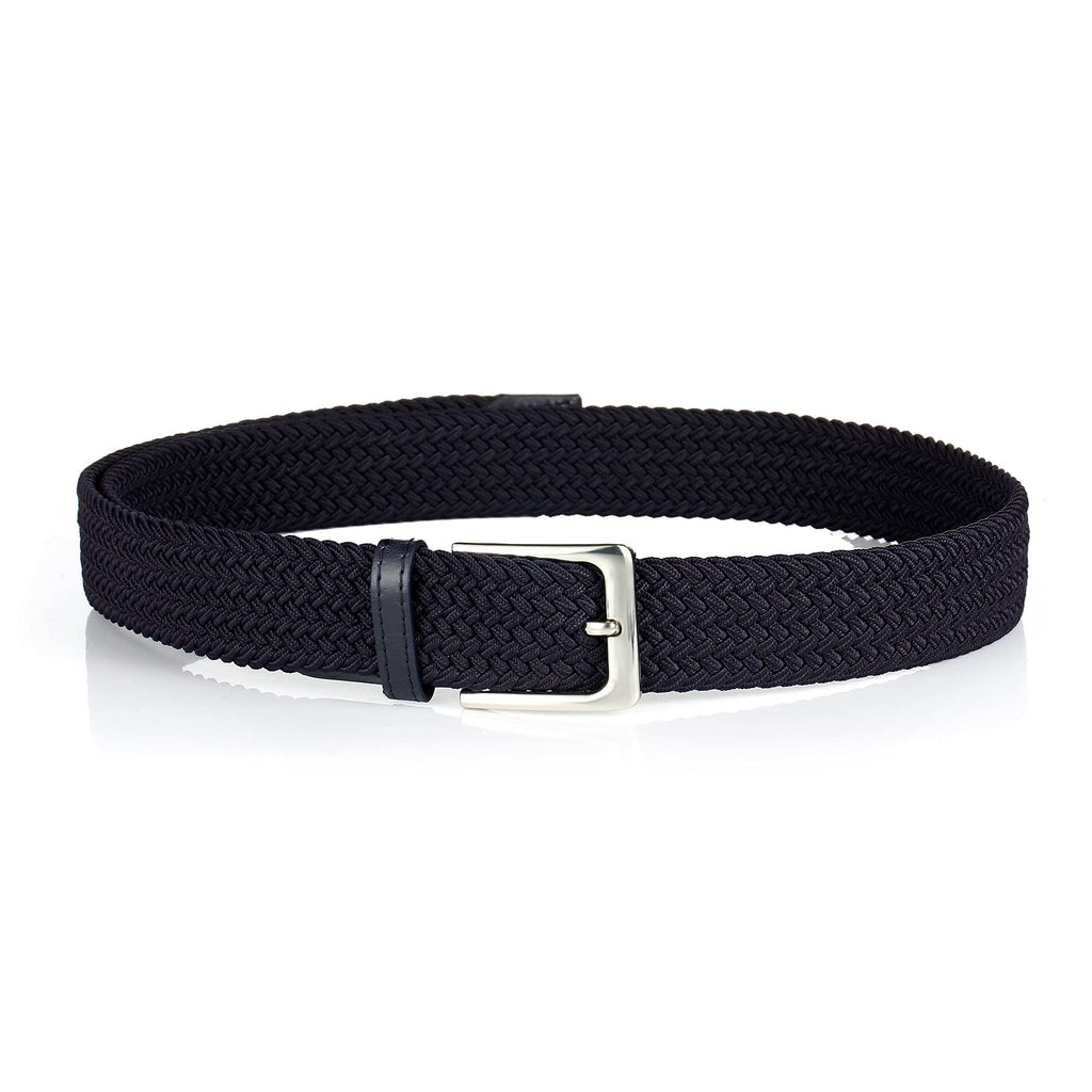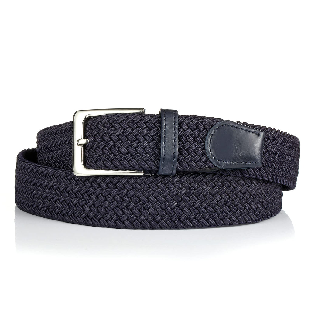 Material: Our durable elastic belt was tightly woven made High Stretch Bend Thread.No matter how you stretch the belt, it would return to the original and it doesnt stretch out of shape. The premium smooth solid alloy buckle never goes out of style. Width 1 3/8.