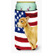 The drink sleeve measures approximately seven and a half inches in length, four and a quarter inches in width, and a quarter inch in height. These dimensions are designed to fit larger cans and pint bottles.
