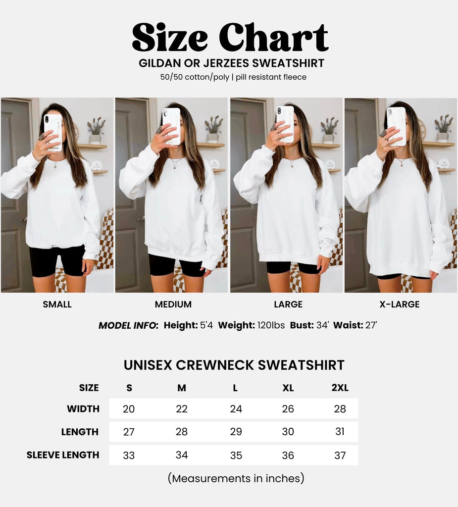 - Adult Sweatshirts: Ultra-soft cotton/poly blend, standard unisex sizing. True to size: size up for an oversized fit, size down for a tighter fit.