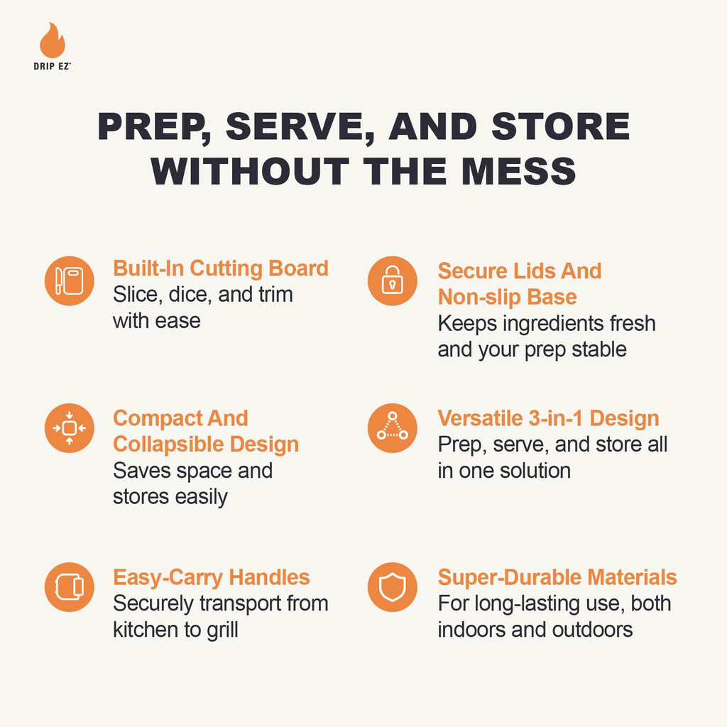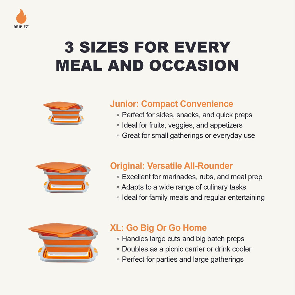Drip EZ Collapsible BBQ Prep Tub(V1) - for Meal Prep, Marinating, Food Storage - Includes Cutting Board & Lid - (1) OG - Black