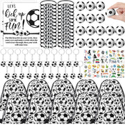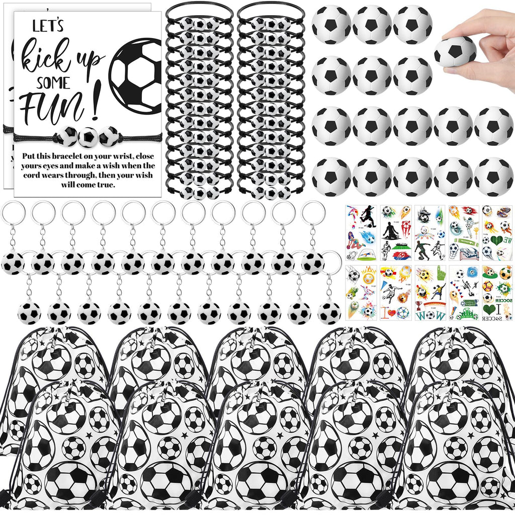 Features: Ideal gift pack: This pack of soccer party favors also doubles as an ideal gift for soccer loving teens and adults alike. Coming with variable utility items like a drawstring bag, a stress ball to squeeze away anxieties, or a keychain to show off football love, its a gift set that truly keeps on giving. Adjustable bracelet: Soccer bracelets feature an adorable, easy to adjust design with striking soccer themed bead accessories attached. It is ideal for teens, adults, and team members. Specifications: Material: Soccer drawstring bags party favors: polyester Soccer stress balls bulk: pU Soccer ball stickers: waterproof paper Main color: black, white Size: as shown in pictures Package includes: 24 x Soccer drawstring bags party favors 24 x Soccer stress balls bulk 24 x Soccer bracelets 24 x Soccer keychains 24 Sheets of soccer ball stickers 24 x Soccer card Notes: Manual measurement, please allow slight errors on size. The color may exist a slight difference due to different screen displays. Suitable for people over 12 years old, and its recommended to use under the supervision of adults in case of choking risk.