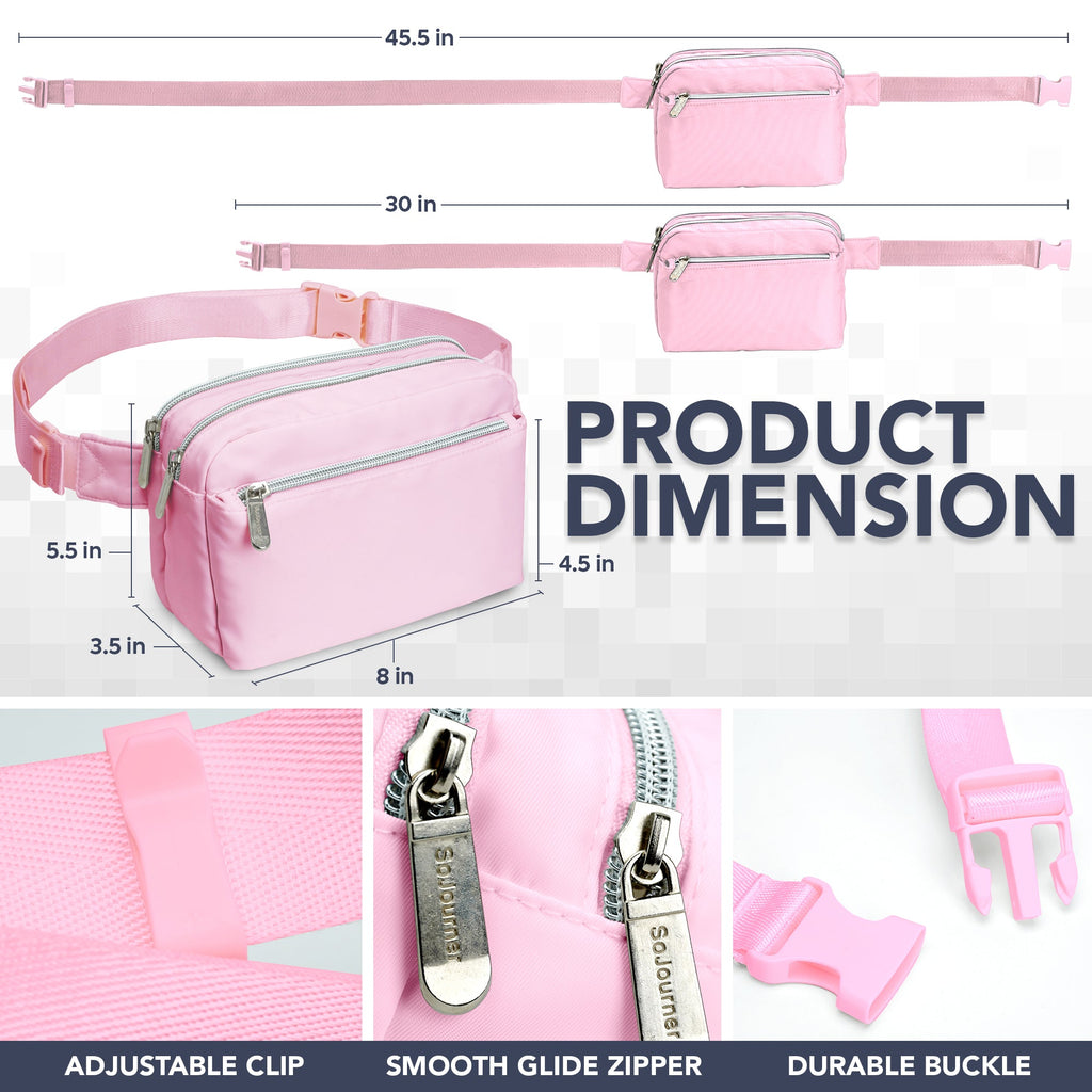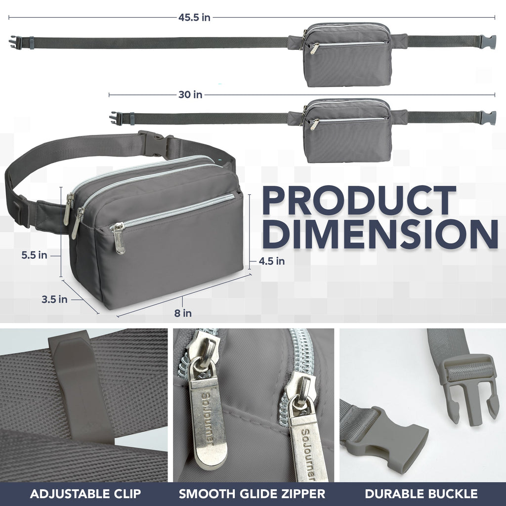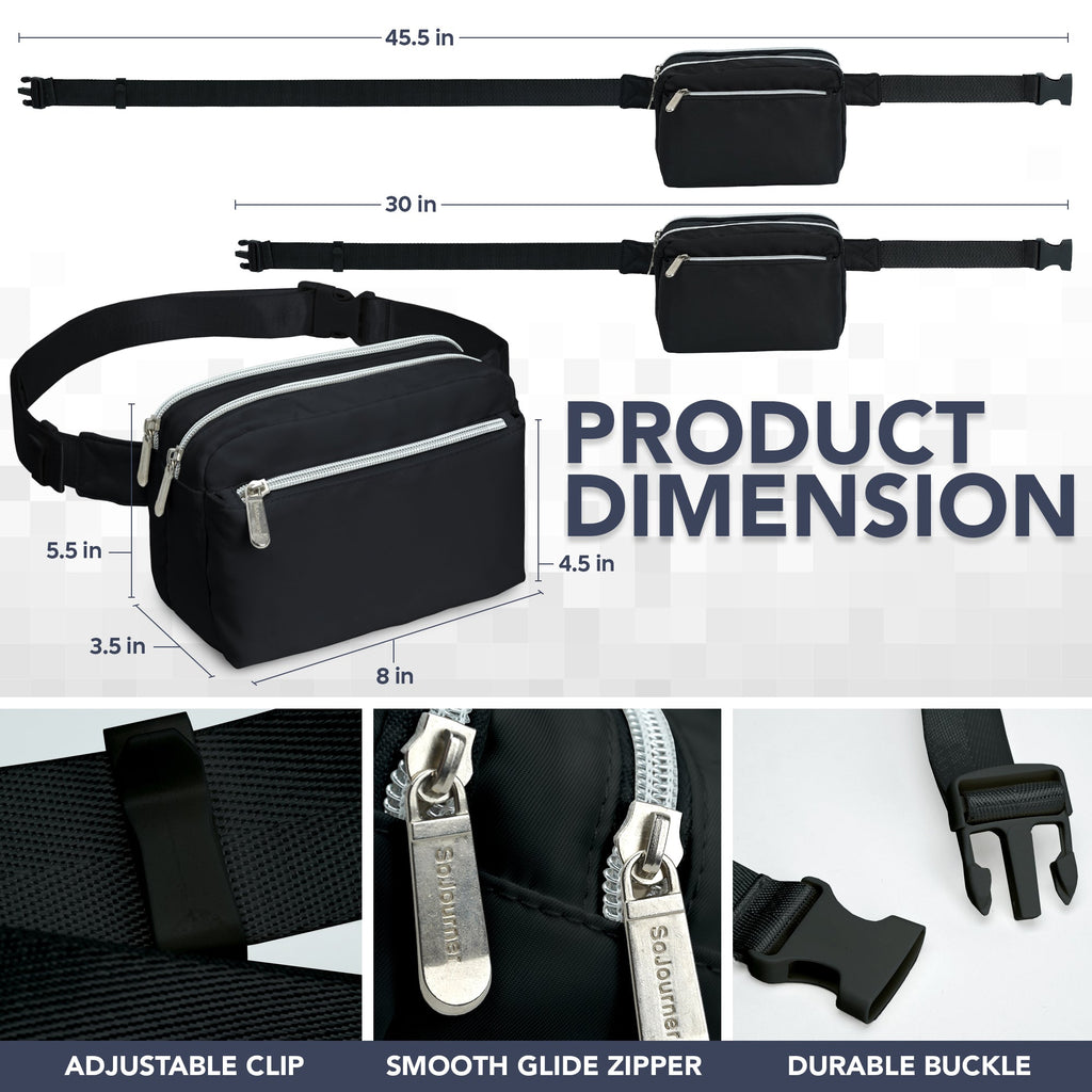 - SIZE - 8.0 x 3.5 x 5.5 in - Our fanny pack is the perfect size for the essentials and makes a great, cross body fanny packs for women, men, or kids. Crossbody fanny bags for women is designed to keep your essentials close and hands-free dupe