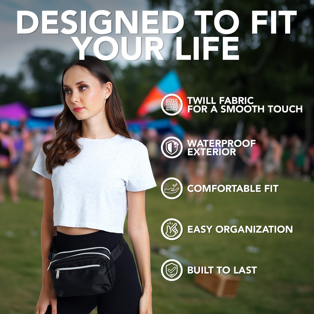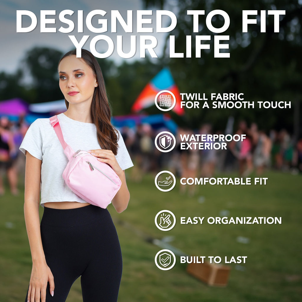 - DURABLE CONSTRUCTION - Our fanny pack crossbody bags for women is made from a durable water resistant twill fabric with enhanced stitching, adjustable belt and premium zippers to last the test of time