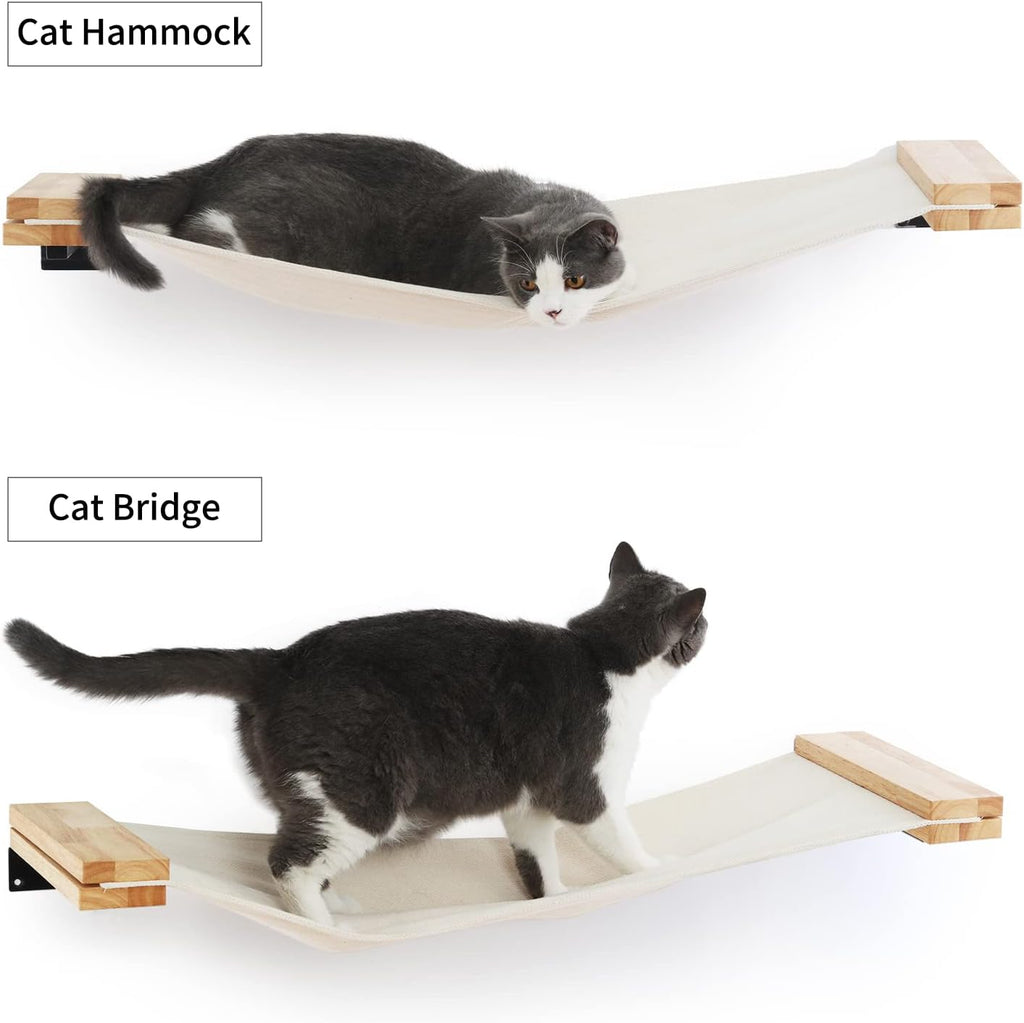 Large and stylish 34x13" cat wall shelf made of solid rubberwood — perfect for your cat to sleep, play, and perch. The removable fabric is machine washable, and installation is quick and easy with included tools and instructions. A durable, space-saving cat playground for modern homes.