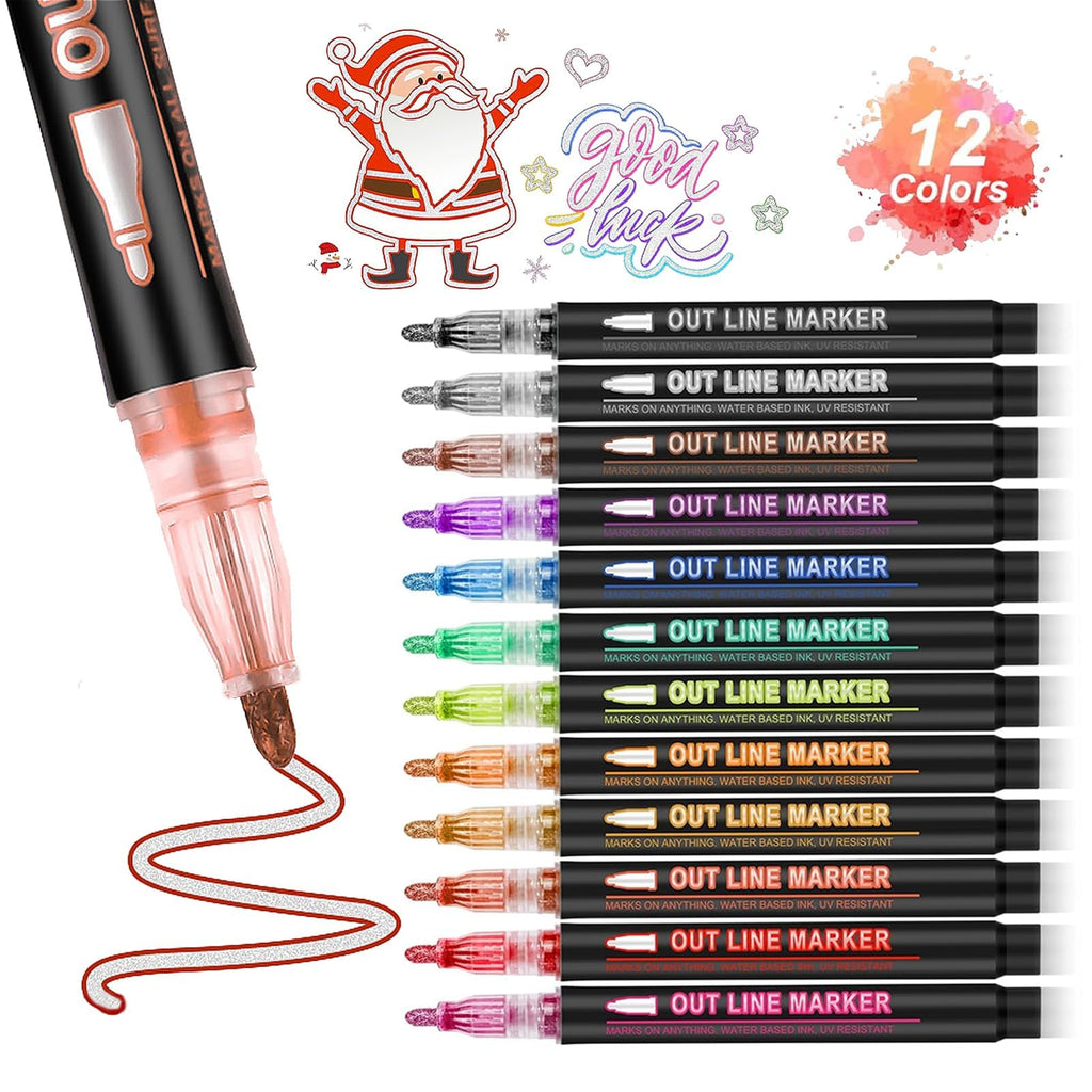 GeniusArt Glitter and Metallic Marker Set - Fun and Colorful Gift for Kids, Birthdays, and Art Projects - Perfect for Coloring Books, Crafts, and More!