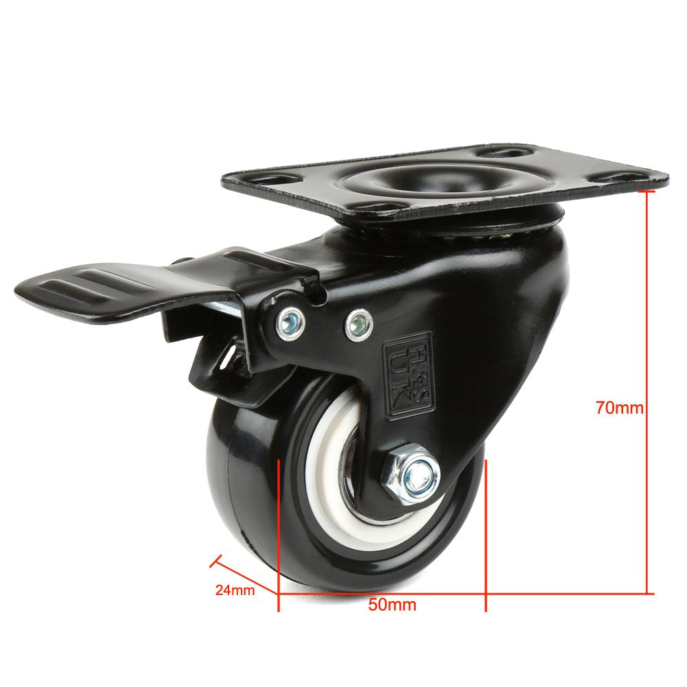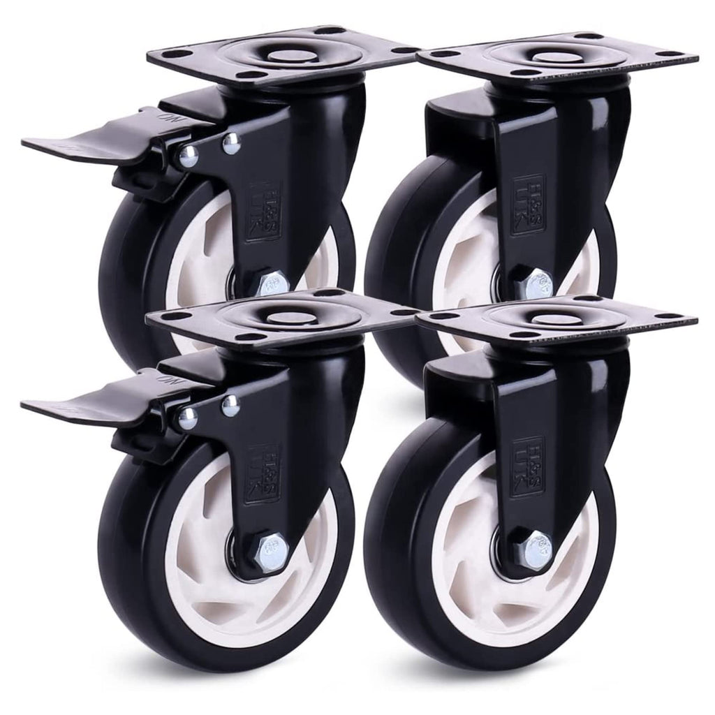 H&S Heavy Duty 2 Caster Wheels for Trolley Furniture - 4 Casters with Brakes for Outdoor Furniture - Black Furniture Casters w
