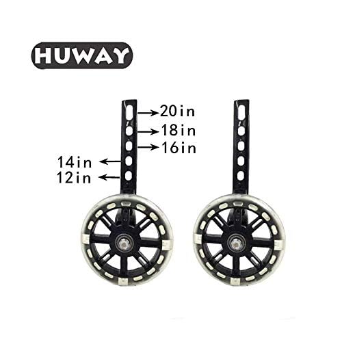 ??When young children start to ride a bike,the first thing they need to gain is a sense of balance. Training wheels or stabilizers are an additional wheel or wheels mounted parallel to the rear wheel of a bicycle that assist learners until they have developed a usable sense of balance on the bicycle. ??The kids bike stabilisers is very sturdy and simple to install suit for 12 14 16 18 20 Inch Training Wheels. ??Please note that slight color difference should be acceptable due to the light and screen. Specification: ? Material: Steel + Plastics + Rubber ?Color: Blue ,Black, Red,White, Purple, Rose ?Size: Wheel: 4.33 inch*4.33 inch*0.98 inch /11cm *11cm*2.5cm Bracket Arms: 10 inch*1.1 inch / 25.4cm*2.8cm ?Fit: 12/ 14/ 16/ 18/ 20 inch Bicycles INSTALLATION NOTES: 1.Insert bolt through the wheel, washer and training wheel arm. 2.Attach and tighten washer and nut, you will require two wrenches to tighten this propeily. 3.Remove rear axle nut from the bicycle wheel axle. 4.Insert axle though locking brace and fix the raised point to the bicycle frame ends . 5.Determine desired height of training wheels when attached the training wheels should have about 0.5-1cm (1/5 to 3/5in) space from the ground. 6.Tighten axle nut with adjustable wrench . 7.Repeat for another suide.
