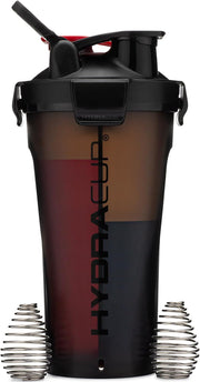 This 32oz dual shaker bottle lets you carry pre- and post-workout drinks in one convenient container, with two 16oz chambers, stainless steel wire whisks for smooth mixing, and a four-way locking lid that creates a secure, leakproof seal. Made BPA-free, it also features a carry loop, printed measurement lines, and an easy-clean rounded base, making it perfect for gym, school, or work use.