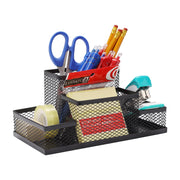 Desk organizer compartments let you separate pens, pencils, sharpeners, staplers, scissors, rulers, glue sticks and binder clips, sticky notes and sticker dots, tacks and pins and postage stamps, small accessories, office accessories, and all the other odds and ends that find their way onto surfaces large and small - Not only use in the office, at home, but also in schools for storing various items. Mesh-hollowed and Integrated Design for drying and ventilation and offers a tidy desktop and easy classification - Function: Desk organizer, Pen organizer, Mess collection, Office supplies.