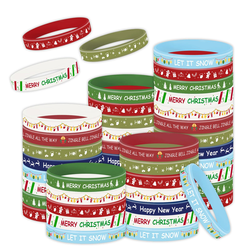 Spread holiday cheer with MATEPLUS Christmas Silicone Bracelets! These festive rubber wristbands feature 8 delightful styles adorned with charming elk and snowflake patterns that capture the magic of the season. Available in sets of 24, 48, or 64 pieces, these colorful bracelets make perfect party favors, classroom gifts, or stocking stuffers. The durable silicone material ensures comfortable wear while displaying cheerful Christmas designs that kids and adults alike will love. Whether youre planning a holiday party, organizing a seasonal event, or looking for fun Christmas accessories, these wristbands add a playful touch to any celebration. Each bracelet showcases detailed holiday-themed patterns, making them ideal for spreading festive spirit throughout the season. Perfect for party giveaways, these wristbands also make thoughtful additions to Christmas stockings or Santas gift bag.