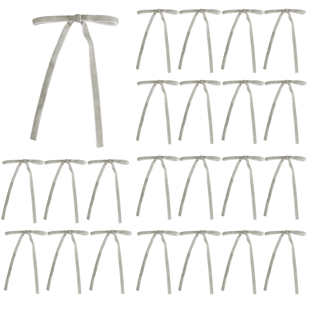 Features: Explore your imagination You can use the ribbon bows to DIY with your friends, to make some handmade crafts. You can use it to wrap gifts, parties, wreaths, cards, and so on, making them more beautiful and eye catching. Widely Applied:you can tie christmas wedding velvet bows to your gifts,wreaths, windows, doors, walls, stairs, fences, fireplaces, porches, trees,this velvet bow is a exquisite ornament to createa warm holiday atmosphere during the Christmas season or Wedding Party. Specifications: Material: polyester Size: 5 x 7 inches/ 12.5 x 17.5 cm Package includes:30 pieces of premade grey velvet ribbon bows with twist tie Notes: Manual measurement, please allow slight errors on size. The color may exist a slight difference due to different screen displays. Winding risk may exist, please stay away from little kids.