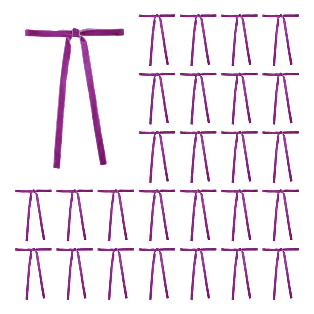 Meseey 30 Pcs Violet Velvet Christmas Bows 5 X 7 Inch Rustic Vintage Wedding Velvet Ribbon Gift Bows For Tree Wreath Garland Hom