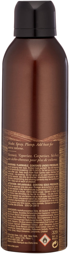 Product DescriptionPlump up the volume with this high-density finishing spray that inflates hair for extra thickness and lushness. Oribe's secret for hair that is big, beautiful, beyond luxurious.Formulated without parabens or sodium chloride. Color and keratin treatment safe. UV protection for hair.Brand StoryOribe, the eponymous line from one of the most influential hairdressers of all time is specifically tailored to meet the hair needs of the truly glamorous. These are the products of the hair obsessed.