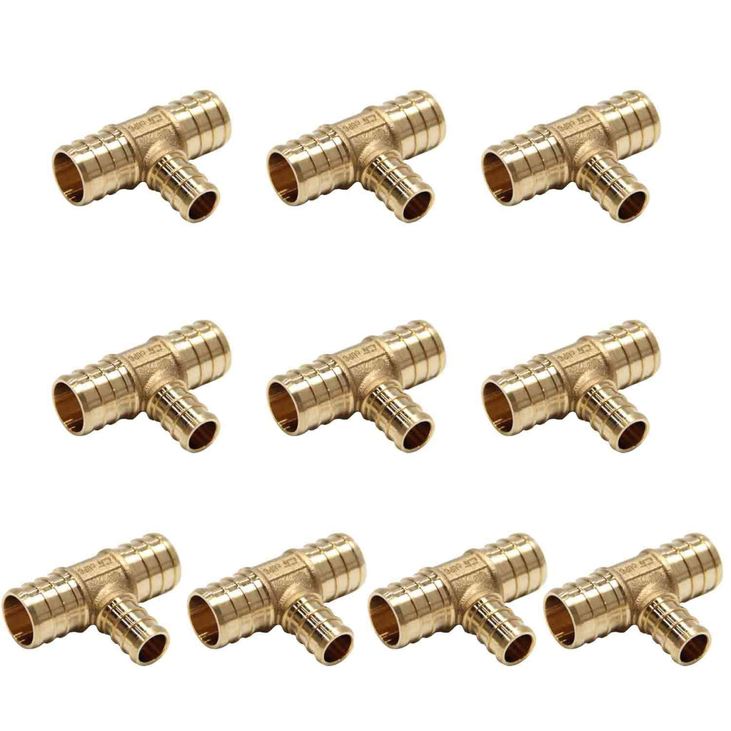 10 PcS Pex Lead Free Brass crimp Fitting 34x34x12 Reducing Tee compatible with Stainless Steel clamp & copper crimp Ring Systems certified with ASTM F1807 NSFANSI 61 NSF 372 This Efield Product is compatible with all types and brands of Pex Tubing Resistant to corrosion due to DZR Brass