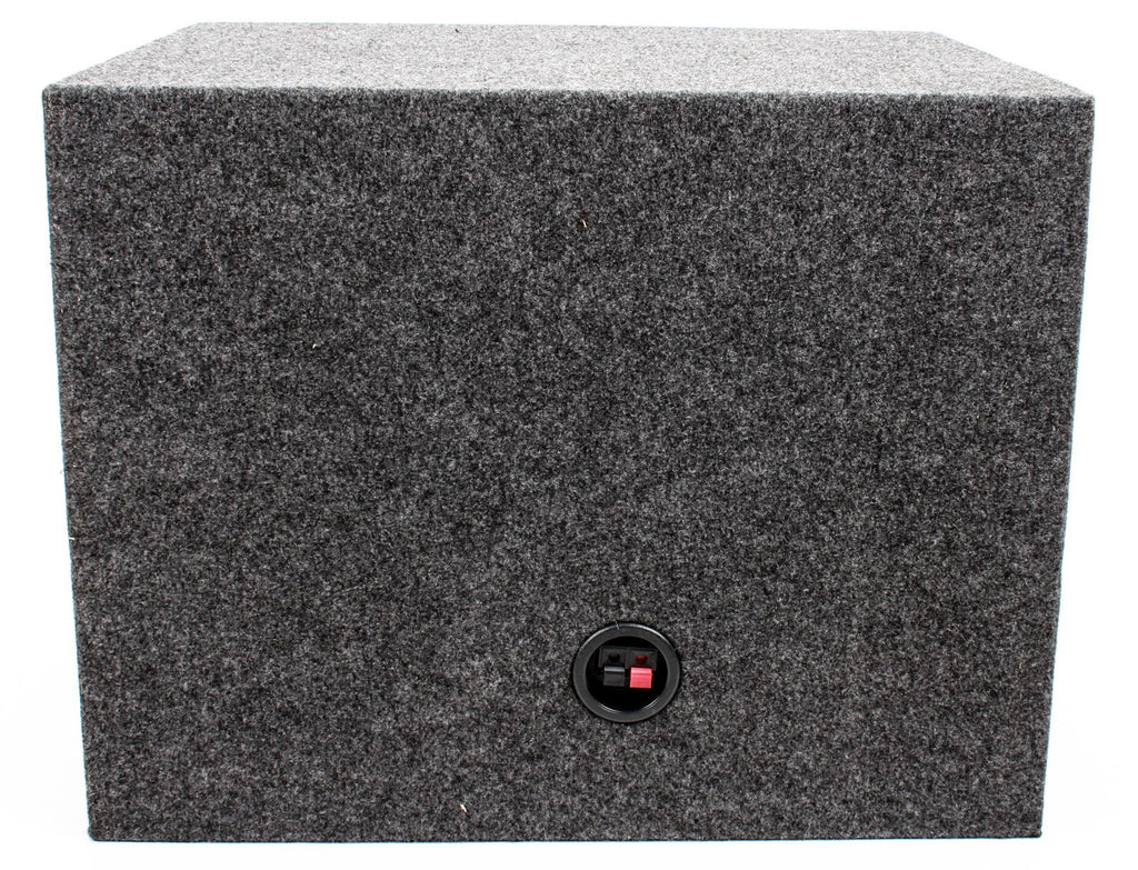 Yes, the Q Power Single 15-Inch Vented Unloaded Box features a high-quality charcoal carpet covering for a sleek finish.