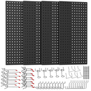 Complete Pegboard Set: This pegboard wall organizer includes 4 pack 2412 metal pegboards and 80pcs pegboard accessories like curved hooks, angled hooks, straight hooks, and more-perfect for all your storage and display needs Durable Steel Construction: Made of heavy-duty steel with a rust-resistant coating, the pegboards and hooks resist heat, humidity, and daily wear without bending or rusting-built to last and keep your tools secure Maximize Wall Space: Free up your workbench and keep tools within easy reach. This wall tool organizer helps you sort and store tools neatly, saving valuable workspace and keeping your area clean and efficient Versatile for Any Occasion: Perfect for garages, workshops, kitchens, classrooms, retail stores, and warehouses. The customizable layout and various hook types make it easy to fit different wall sizes and storage needs Quick and Easy Setup: Includes clear instructions and all mounting hardware. The pegboards and hooks are easy to install and adjust, so you can create your ideal wall storage system in minutes