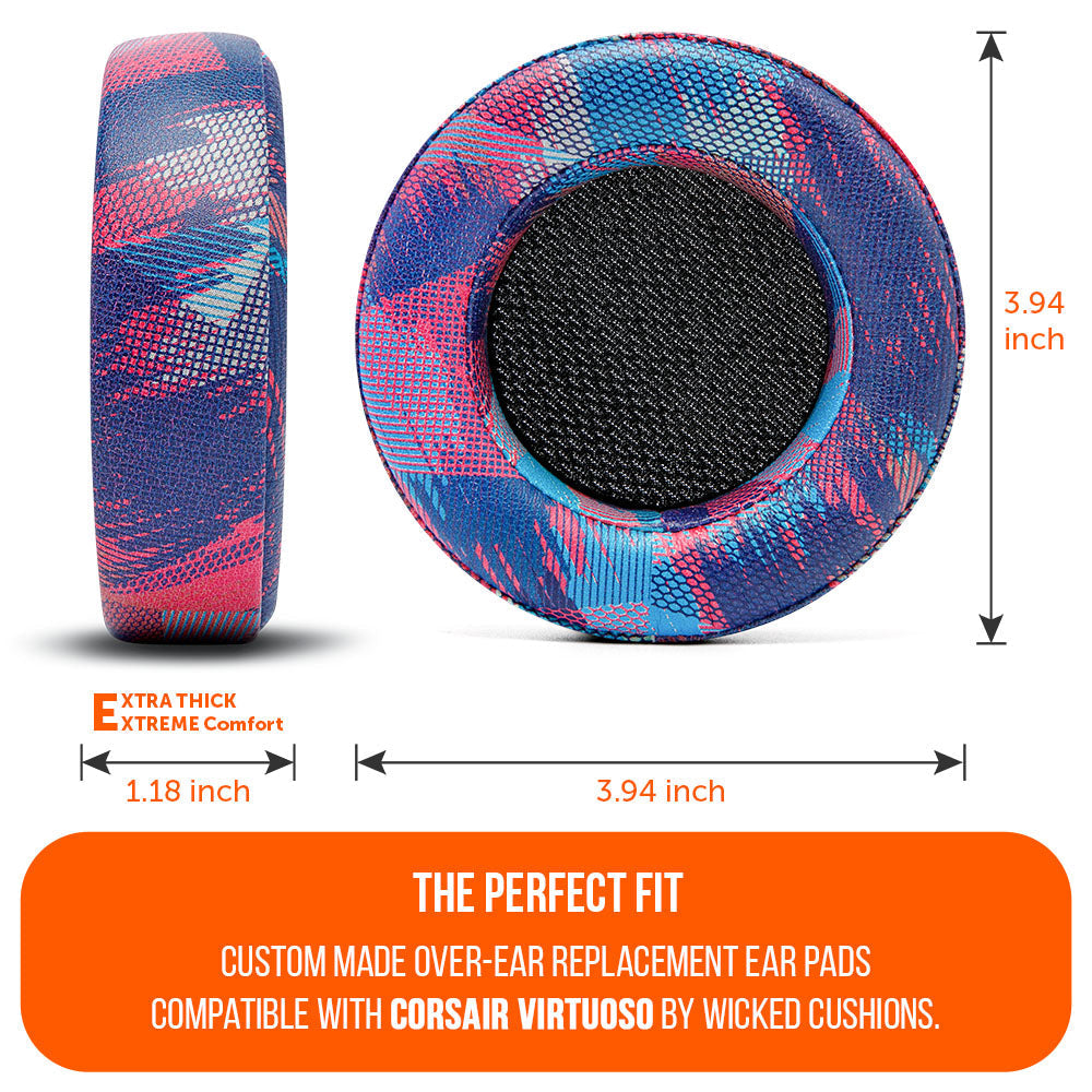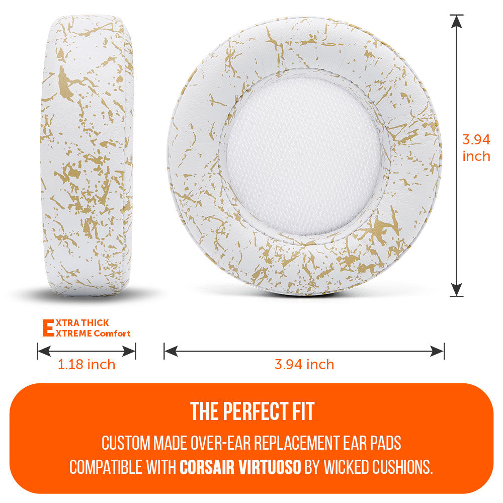 - Rugged Durability: To improve the longevity of your Corsair Virtuoso headphones, we added reinforced stitching and upgraded PU leather to these ear cup replacements. The durability of your Corsair Virtuoso earpads is of extreme importance, Wicked Cushions Corsair Virtuoso replaceable cushions are made of the best quality materials to help you enjoy your headphones for as long as possible.