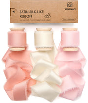 3 rolls with wood spools. Each roll is 1 inch x 5 yard. Light pink, salmon and cream white. The silky satin texture is excellent in thickness and sturdiness while giving a surprisingly SILKIER and smoother touch than other ribbons. Handmade unique rustic frayed edges. Soft, durable, easy to cut and tie. Addition of a deluxe feel to your crafts - perfect for gift wrapping, weddings invites, flower bouquets, baby shower, bridal shower and wrapping paper. Originally designed by Vitalizart designers. Discover different types of ribbons and a lot more colors by checking out our Brand Store!