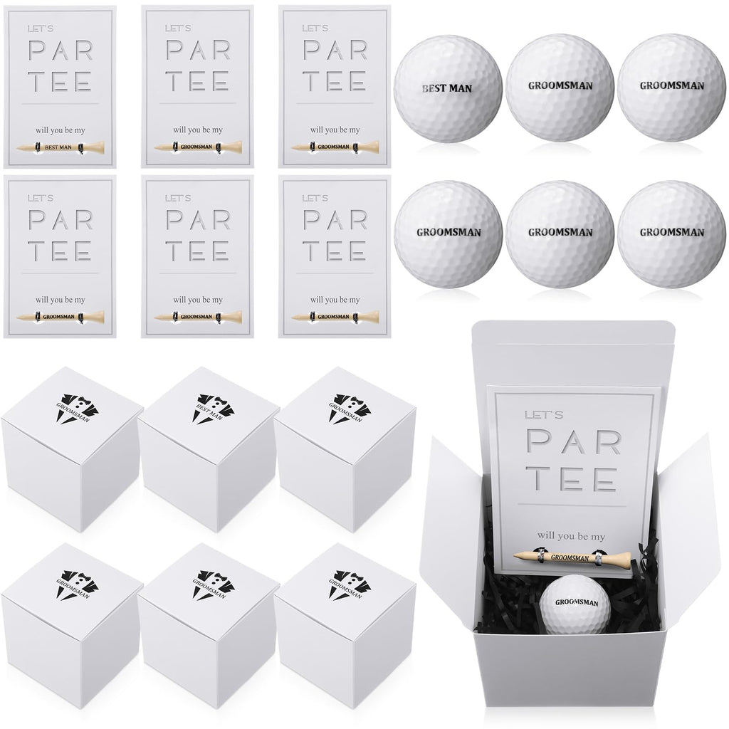 Features: The ideal symphony of essential golf accessories neatly packaged in one place. Our harmonious package includes 6 gift cartons with lids, 6 golf balls, 6 golf spikes, 6 cards, a bag of black raffia, a package of ties. Great as an ideal gift box for the golf-loving best man. Specifications: Material: paper, bamboo, sarin and rubber Color: black, white Size: Box: about 4 x 4 x 4 inches/ 10 x 10 x 10 cm Golf ball: about 1.7 inches/ 4.26 cm in diameter Golf tee: about 2.76 inches/ 7 cm in length Package includes: 6 x Golf balls 6 x Golf tees 6 x Paper boxes 6 x Cards 1 Pack of black raffia, 100 x Silver ribbon ties Notes: Manual measurement, please allow slight errors on size. The color may exist a slight difference due to different screen displays.
